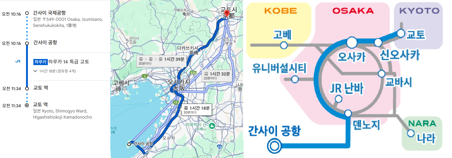 🕰️ 소요시간 : 간사이공항 제1 터미널 ⇔ 교토역 하치조구치 약 1시간 25분~1시간 30분