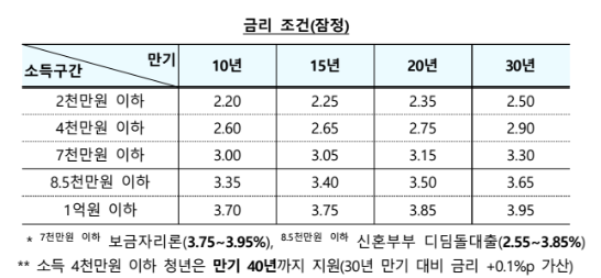 • 대출한도는 기존 디딤돌대출 한도인 최대 3억 원(신혼 4억 원)과 동일