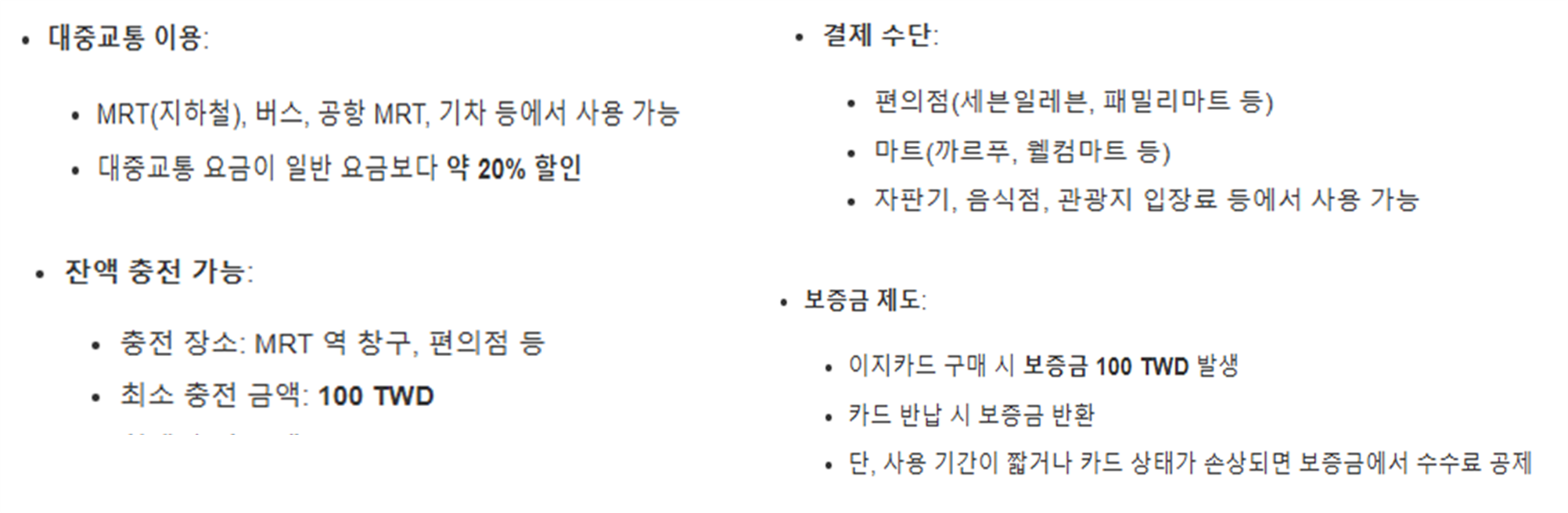 🔹 이지카드 (타이베이 여행 추천 교통카드)
