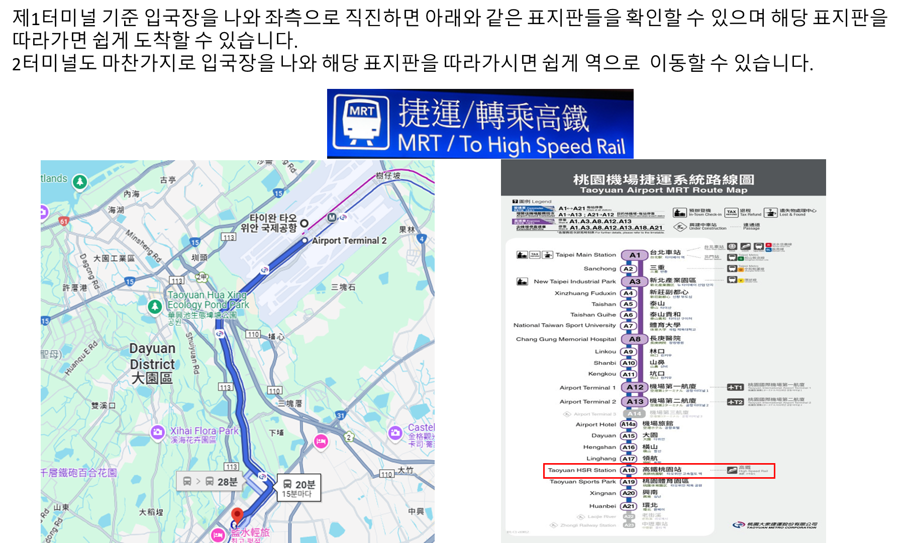 • 타오위안 국제공항 - 고속철도 타오위안역 - 타이난 기차역