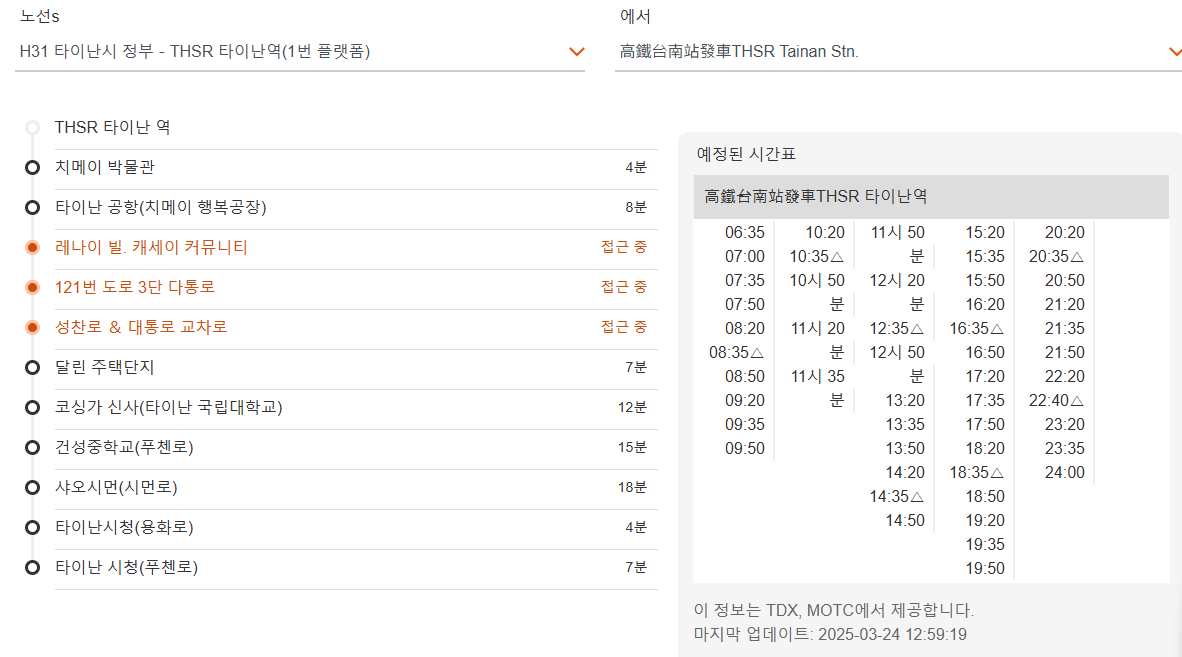 🚌 타이난 고속철도 역에서 타이난 시내 무료 셔틀버스