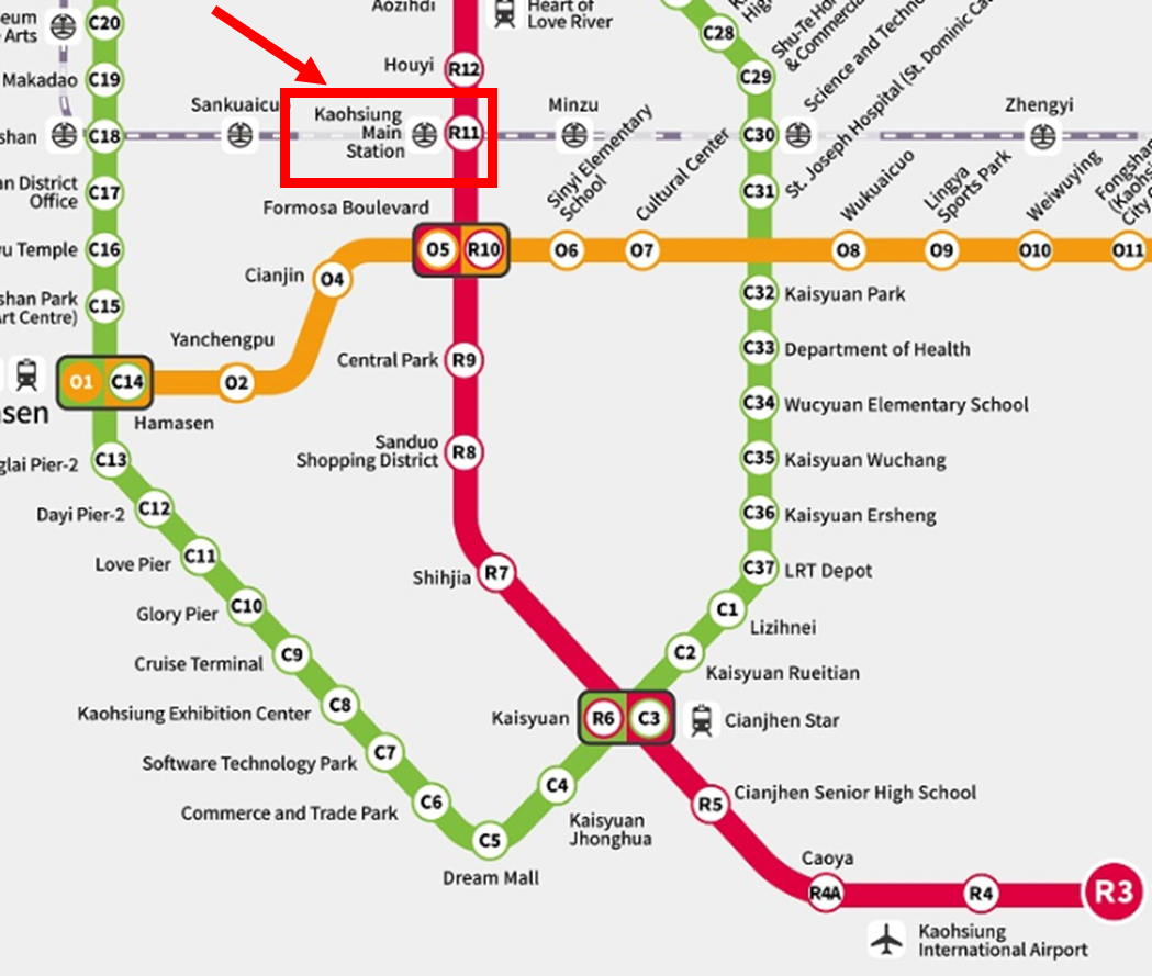 🔹 MRT로 가오슝 공항에서 가오슝 기차역으로 이동하기